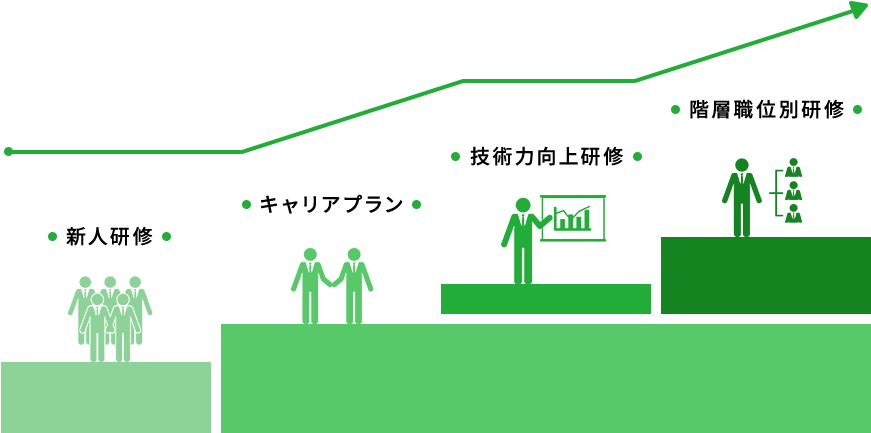 「会社の成長」のためには「個人の成長」が不可欠。一人ひとりが知識と技術を蓄積し、確実なステップアップを。充実したプログラムで可能性を引き出し、活躍の場を広げます。
